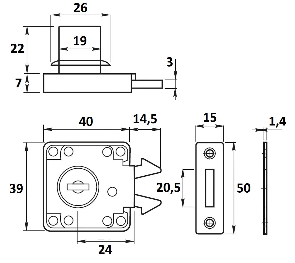 Cerradura mueble - 24mm