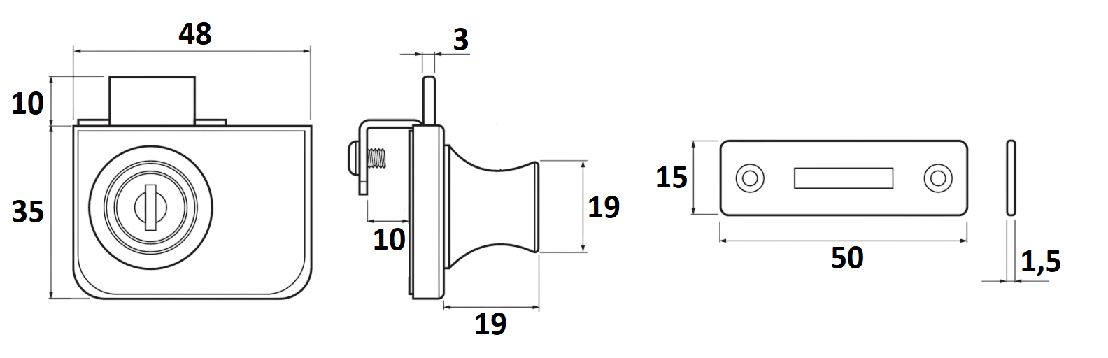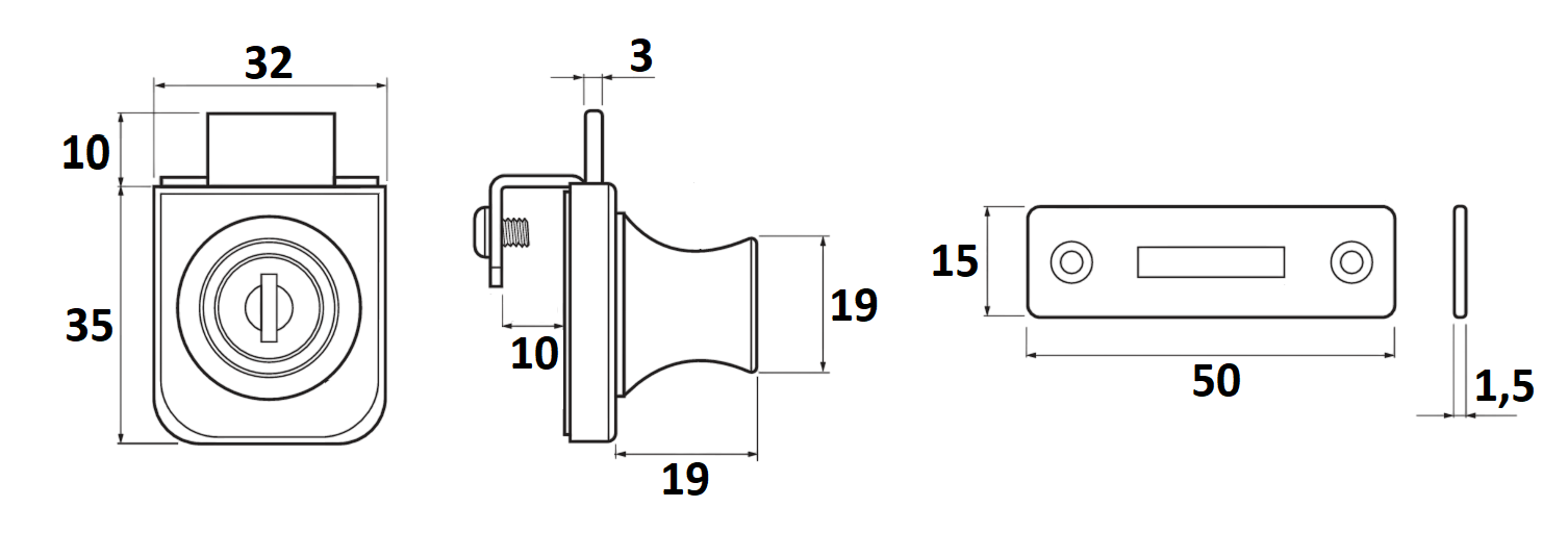 Cerradura Buzón Recta - 30mm