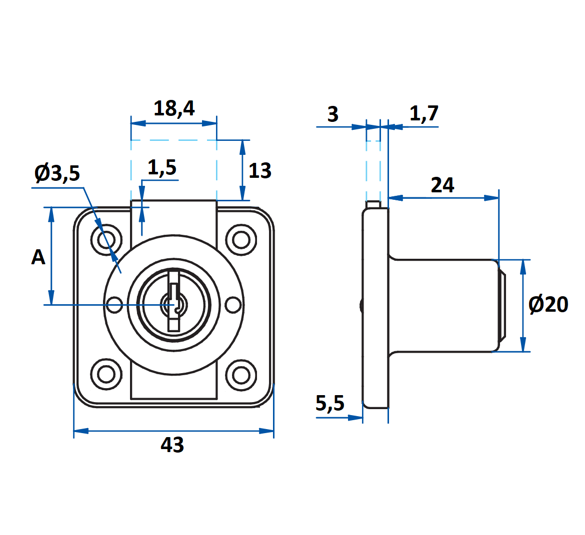 Cerradura Cajón - AGA - 20mm