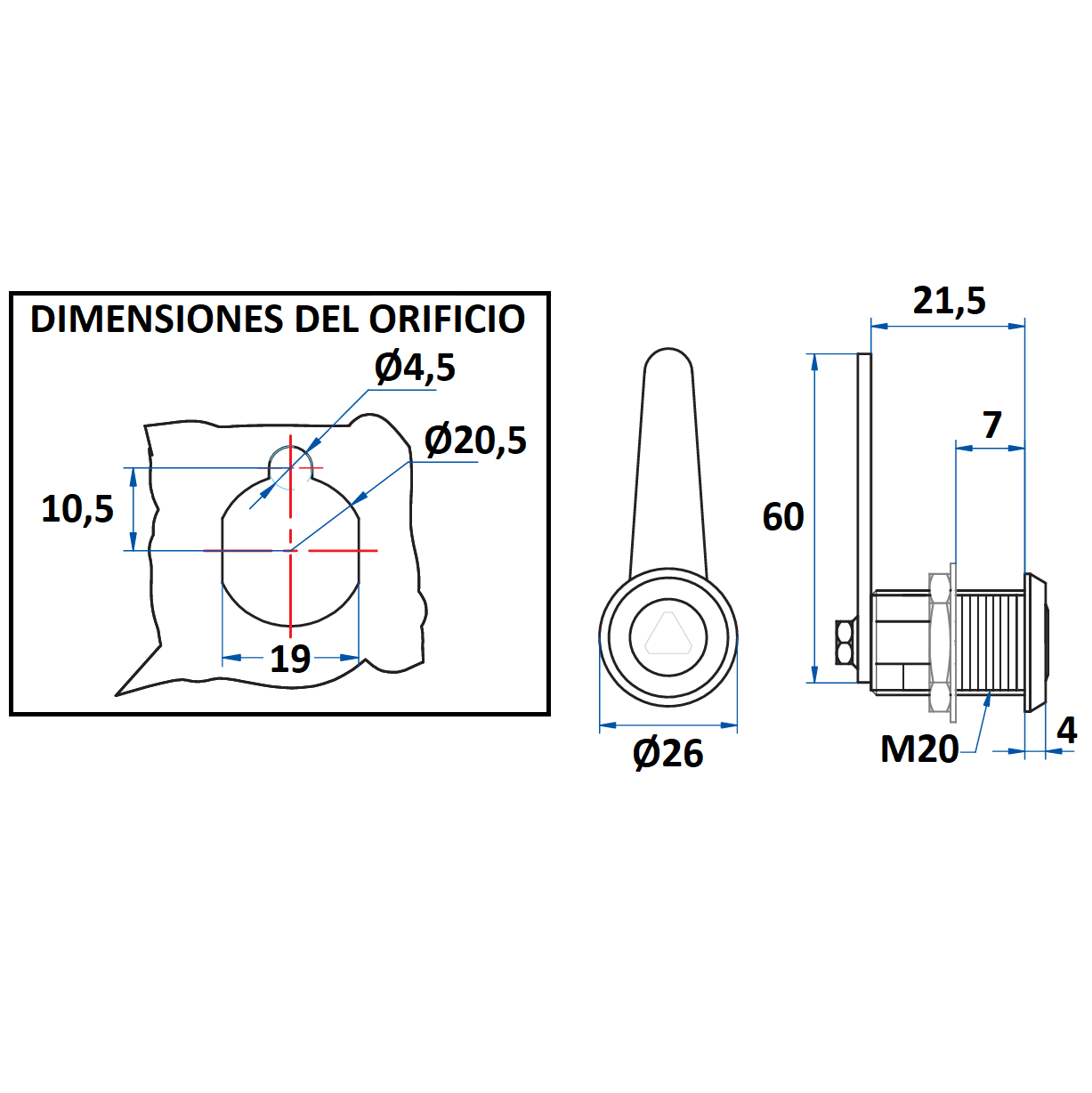 Cerradura Buzón Recta - 20mm
