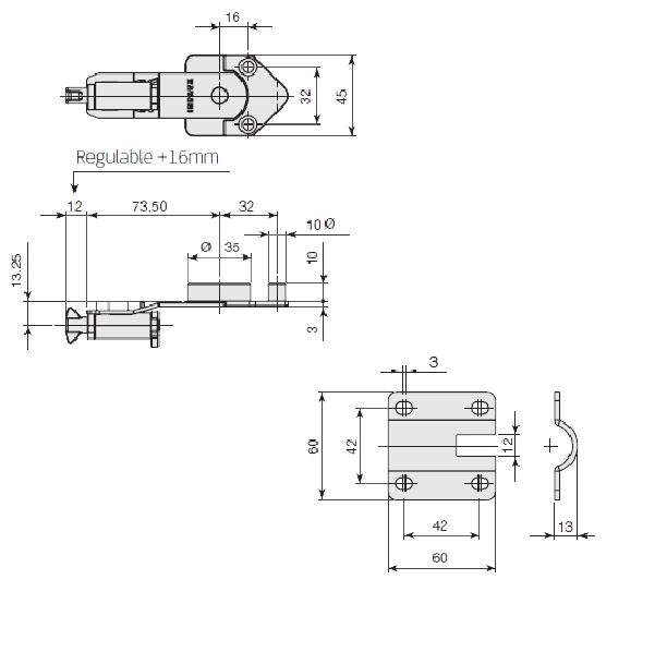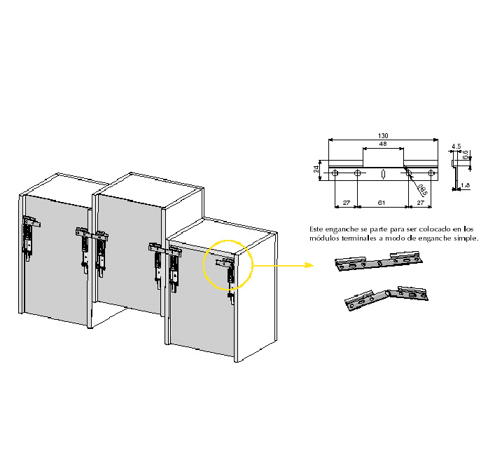 Enganche doble con topes laterales - Zincado - 33 x 110mm